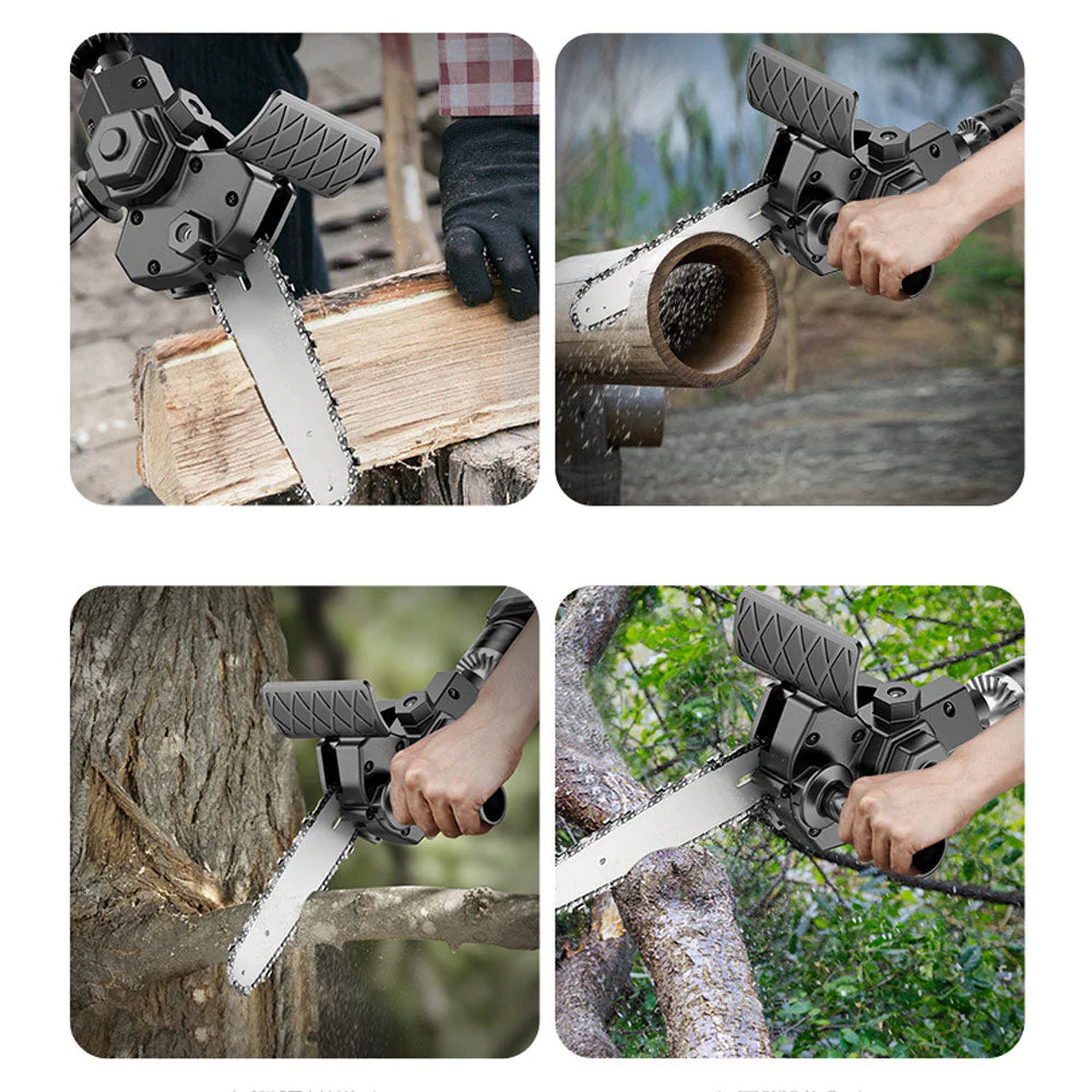 O Adaptador de Motosserra PowerMax é perfeito para cortes de madeira, poda árvores ou arbustos, corte de resíduos de jardim e similares.