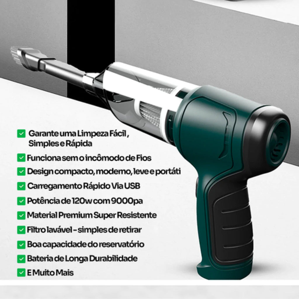 ✅ Grande variedade de uso ✅ Não precisa está conectado a uma tomada ✅ Fácil de usar e de limpar após a utilização ✅ Designer compacto, moderno, leve e portátil ✅ Potencia 120w com 9000pa e longa durabilidade de bateria