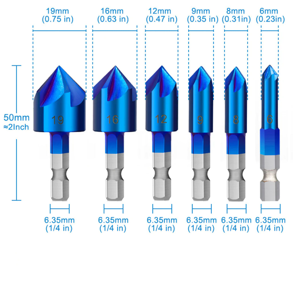 1x Brocas Escareadoras Para Chanfro | Kit com 6 Peças