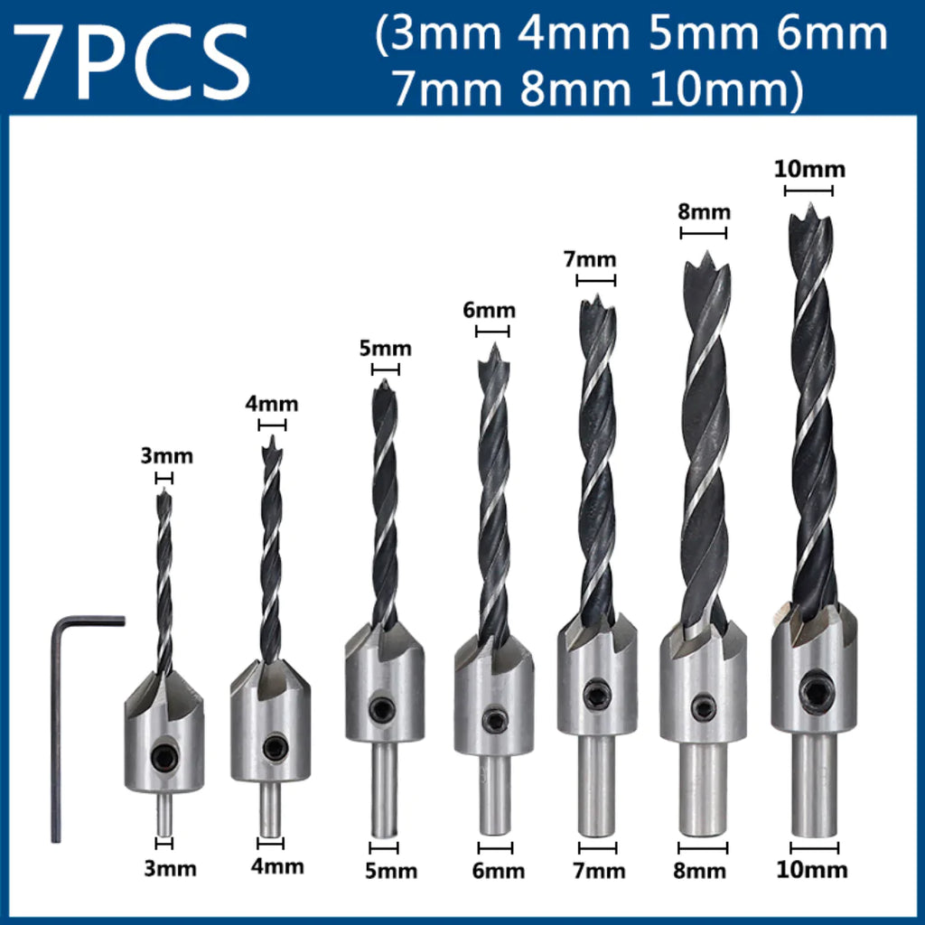 Material: aço de alta velocidade Tamanhos: 4 Peças: 3mm / 4mm / 5mm / 6mm 7 Peças: 3mm /4mm / 5mm / 6mm / 7mm / 8mm / 10mm