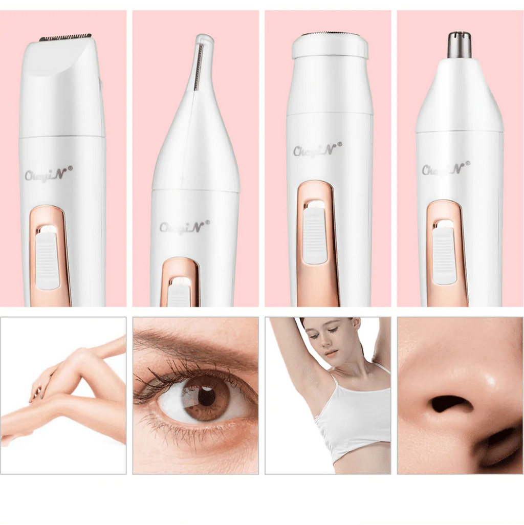 O Depilador 5 em 1 | LadyHair™, contendo 5 pontas diferentes para cada necessidade do seu corpo, com a Tecnologia Exclusivaque protege sua pele evitando cortes, vermelhidão e irritações.