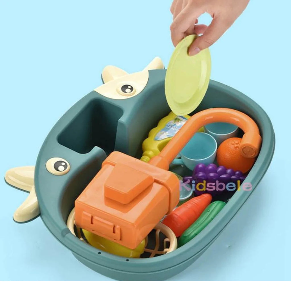 Material: Plástico ABS Contém: 1 pia com 16 utensílios (vegetais, talher, pratos, xícaras...) Tamanho da lava louças: Redonda 27x28x32cm / Quadrada 28x34x24.5cm Peso do produto aprox.: 500g Gênero: Unissex Cor: Multicolor Idade: Acima de 2 anos
