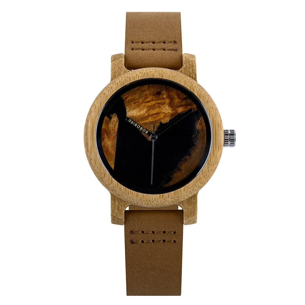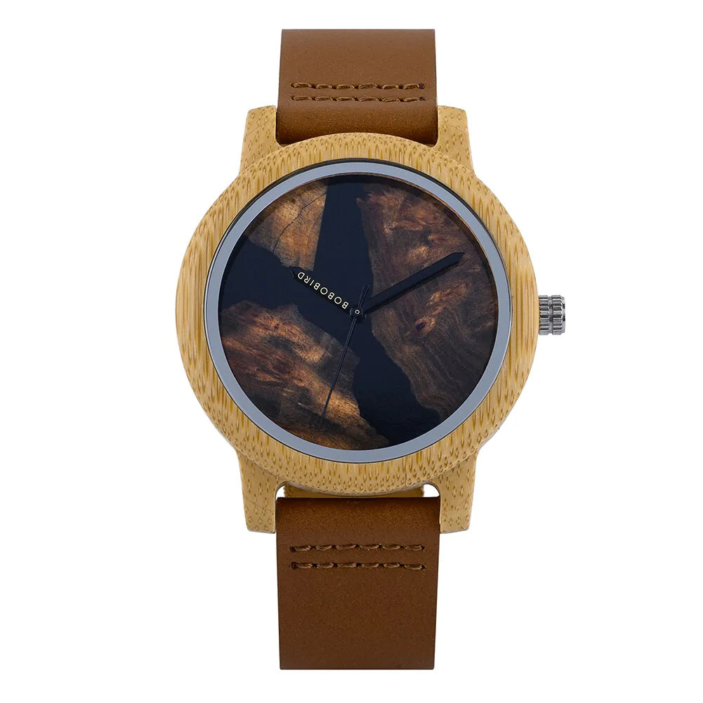 Feito delicadamente com caixa de bambu e pulseira de couro, trazendo modernidade e um estilo casual sofisticado.